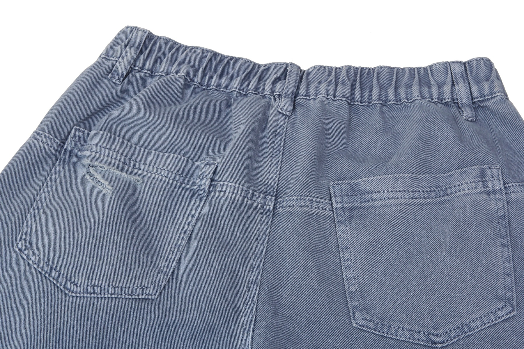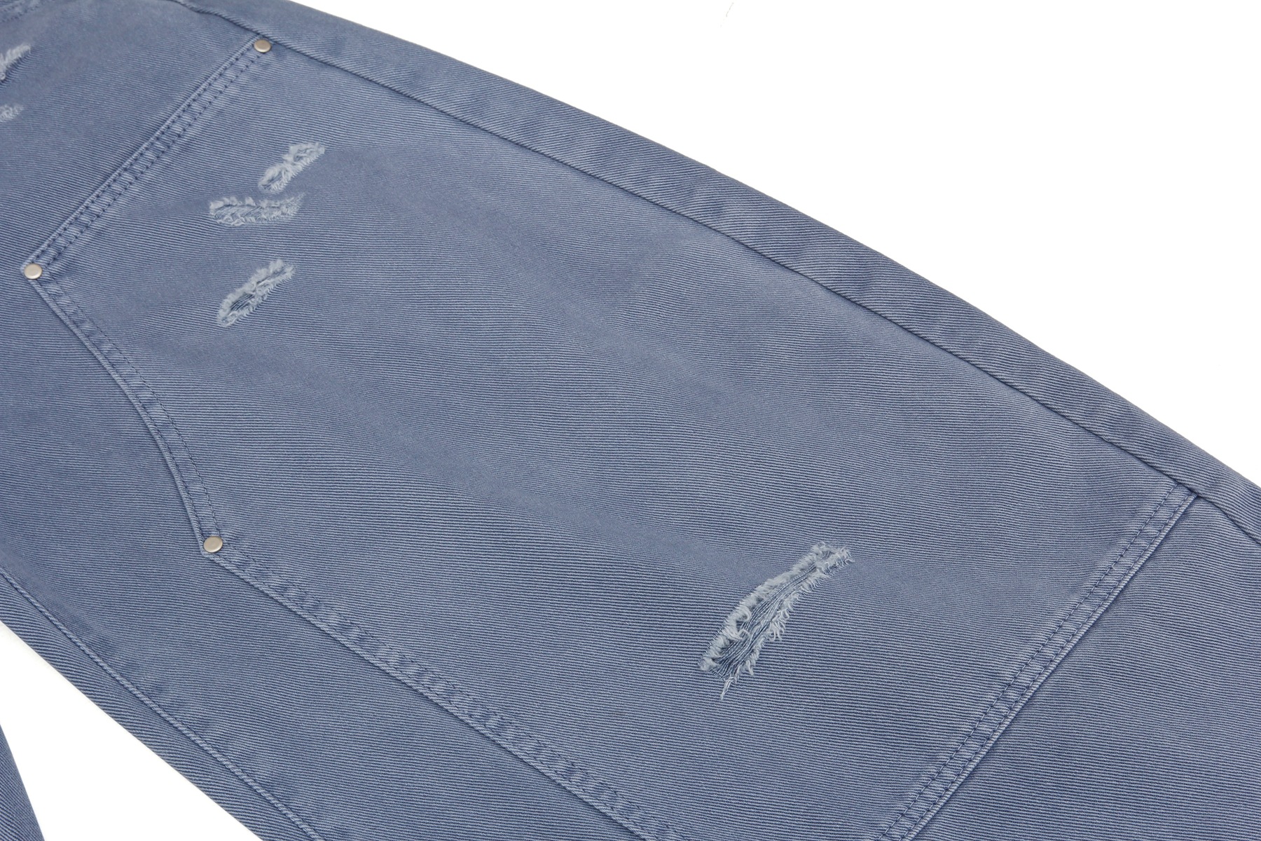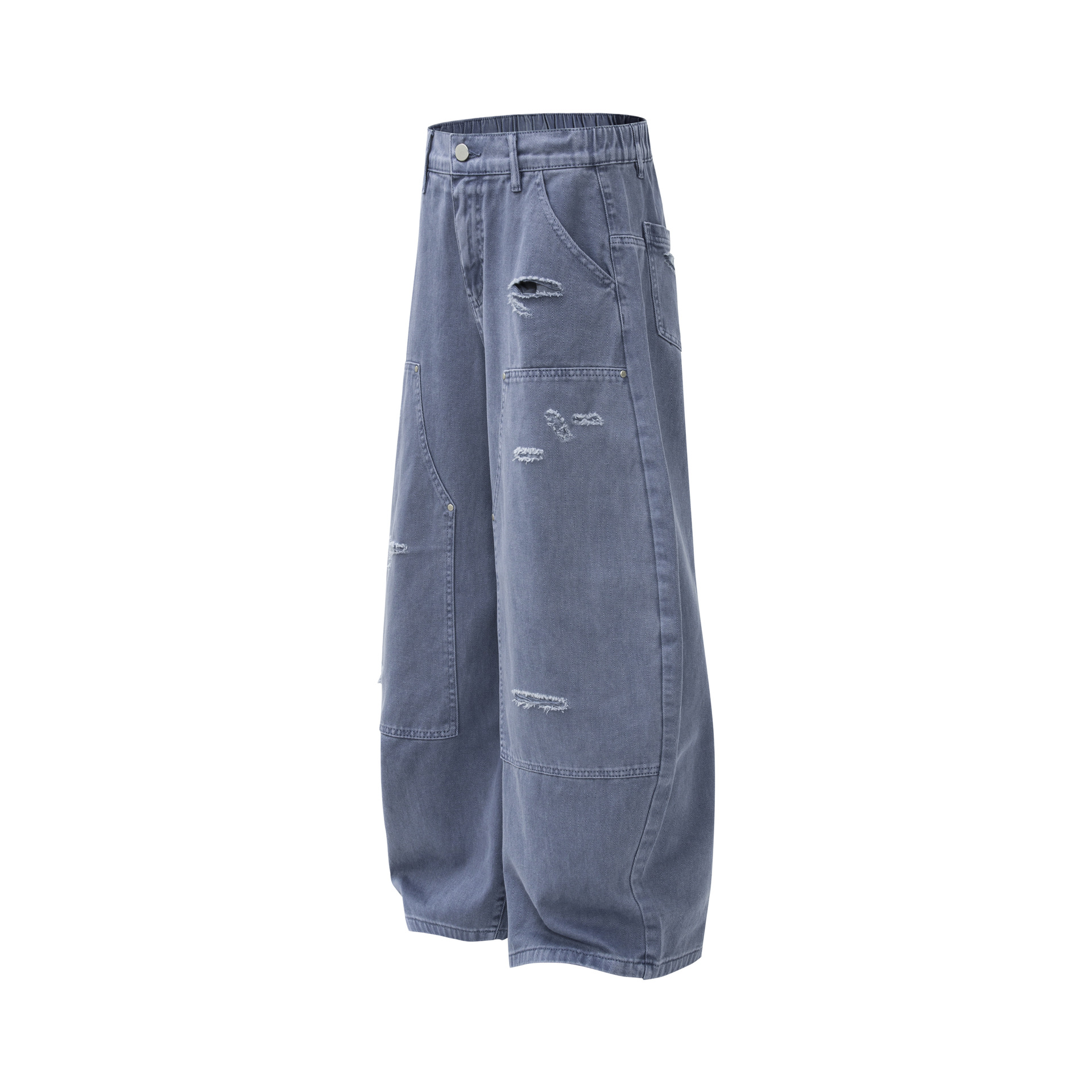Vintage Street Style Heavyweight Ripped Denim Blue Workwear Design Men's Loose Knife-Shape Cargo Pants